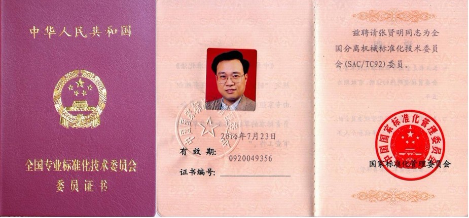 中国机械行业主管部门的领导在大会上宣读了国家标准化管理委员会文件,宣布第六届全国分离机械标准化技术委员会成立,并对全国49位委员颁发了证书。122cc太阳集成游戏废油中心主任张贤明教授被聘为委员,每届任期5年,至此,张贤明教授已连续担任3届全国分离机械标准化技术委员会委员。