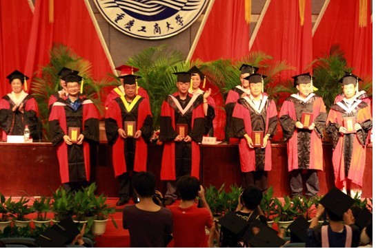重庆市优秀硕士毕业生牟瑛同学接受颁奖(前排左5)