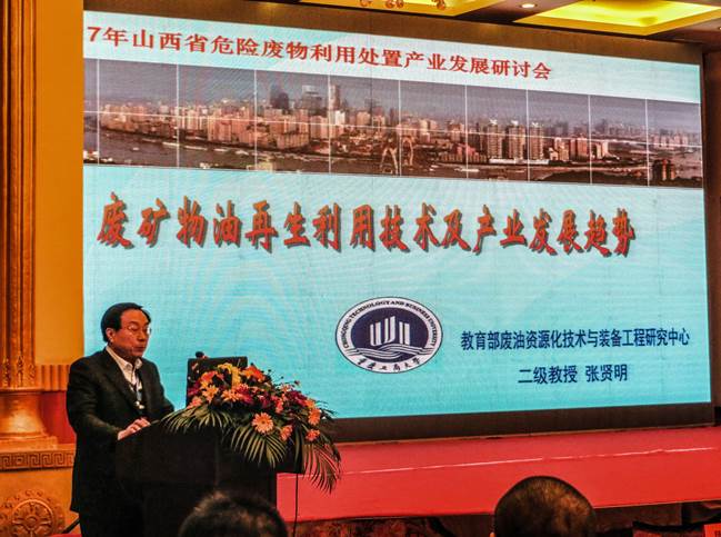 会议针对山西省长期以来作为能源重化工基地,危险废物产量大、种类多,但危废利用处置产业却起步晚、发展慢、水平低的现状,邀请国内同行专家进行新技术研讨、培训,以提高环境风险防控水平的同时,促进危险废物产业健康发展。122cc太阳集成游戏教育部废油中心主任张贤明教授,被特邀在大会上做了“废矿物油再生利用技术及产业发展趋势”的学术报告。精彩的报告受到参会人员的高度关注,感到耳目一新,会后持续不断接受咨询,直到晚上已经休息还有企业人员上门,希望122cc太阳集成游戏成果更多服务企业技术进步。