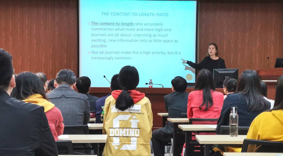 Nuno Miguel Matos Pires教授报告了他在液体中广普污染物的监测技术成果,启发拓展了废油资源化技术与装备研究中的污染物检测与控制新思路;Fadeeva Anastasia以她在俄新社、«Professional»翻译局任翻译的实践经验,原汁原味的分析、介绍了科技论文英文写作的技巧、规范、习惯、润色以及注意事项等。