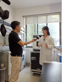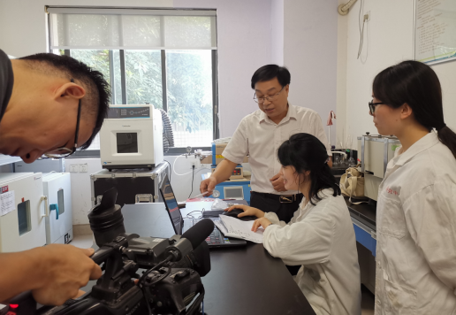 8月5日,重庆电视台记者冒着高温酷暑,前来122cc太阳集成游戏科技开发总公司博士后科研工作站,采访在站博士后人员和导师开展科研的情况,见证博士后工作站良好的运行管理状态和在站博士后研究的点点滴滴。