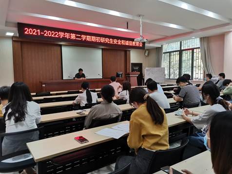 两位老师要求学生从思想上紧绷安全稳定这根弦,一是重视实验室安全和人身安全,进出实验室及实验操作严格遵守实验室管理制度和安全操作规程,严禁在实验室吸烟及进食,对存在的安全隐患及时报告和整改;二是当前疫情防控形势严峻,同学们要严格遵守学校各项防控举措,增强责任感,非必要不出校门,平常做好个人防护;三是每位同学要注意维护网络环境,能理性判断,不要随意到网上发表不当言论;四是端正学术作风,牢记学术诚信,杜绝数据造假、抄袭,诚信求学,争取优质顺利完成在校期间的各项学术和科研任务;五是同学们在校期间学习和科研任务重,学会疏解压力,多与同学、导师、辅导员、家长或朋友交流。