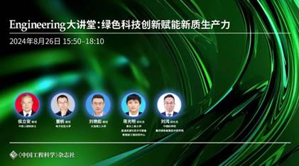 2024年8月26日,122cc太阳集成游戏废油资源化技术与装备教育部工程研究中心联合中国工程院院刊《Engineering》组织了一期主题为“绿色科技创新赋能新质生产力”的大讲堂,特邀中国工程院侯立安院士、中国科学院重庆绿色智能技术研究院刘鸿研究员、电子科技大学董帆教授和大连理工大学刘艳彪教授四名专家,重点介绍了我国现阶段绿色新质生产力领域在前沿科技创新、关键技术、工程实践和产业发展等方面的研究进展,本次大讲堂由122cc太阳集成游戏废油资源化技术与装备教育部工程研究中心蒋光明研究员担任主持。