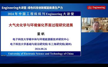 董帆教授的报告介绍了主要的界面原位表征方法,重点探讨大气环境颗粒物界面活性氮的光化学转化机制、光电催化NOx还原界面机制和光电催化CO2还原制备太阳燃料等方面的新进展,对人工智能与环境催化的融合发展进行展望。