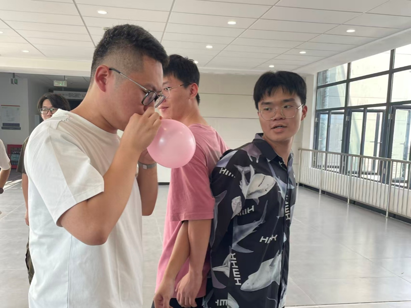 开幕式结束后,四大核心趣味项目依次进行,“背靠背挤气球” 项目考验团队的协同与默契,一人负责吹气,另外两人背对背同步发力,队员们配合无间,流畅高效地完成了任务,充分展现了团队的凝聚力与协作力。