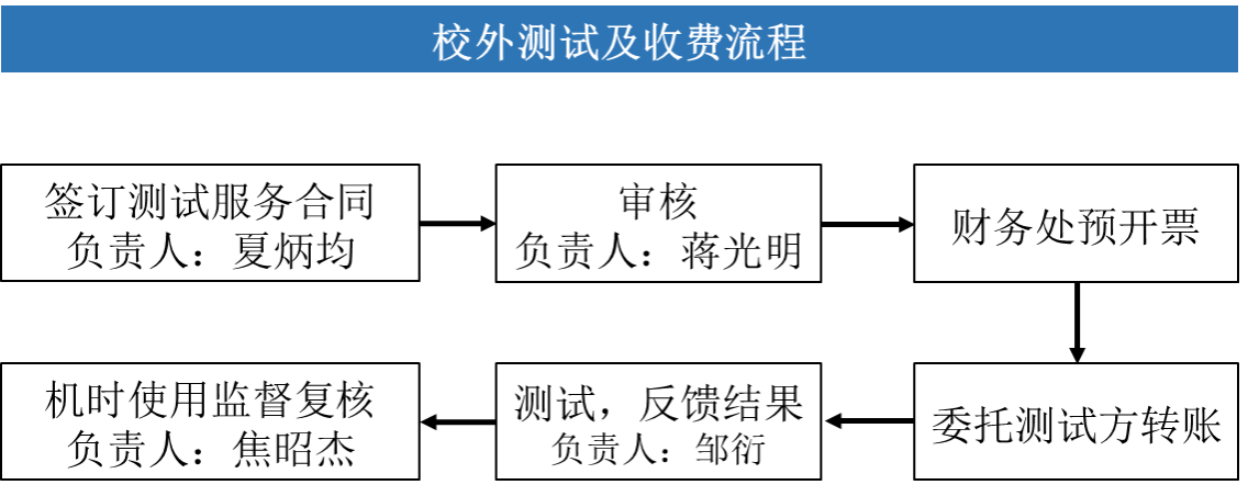 1、校外人员测样与废油中心办公室相关人员提出测试意向,确定测试内容和机时,并与122cc太阳集成游戏签订《测试服务合同》并经中心领导审核;
