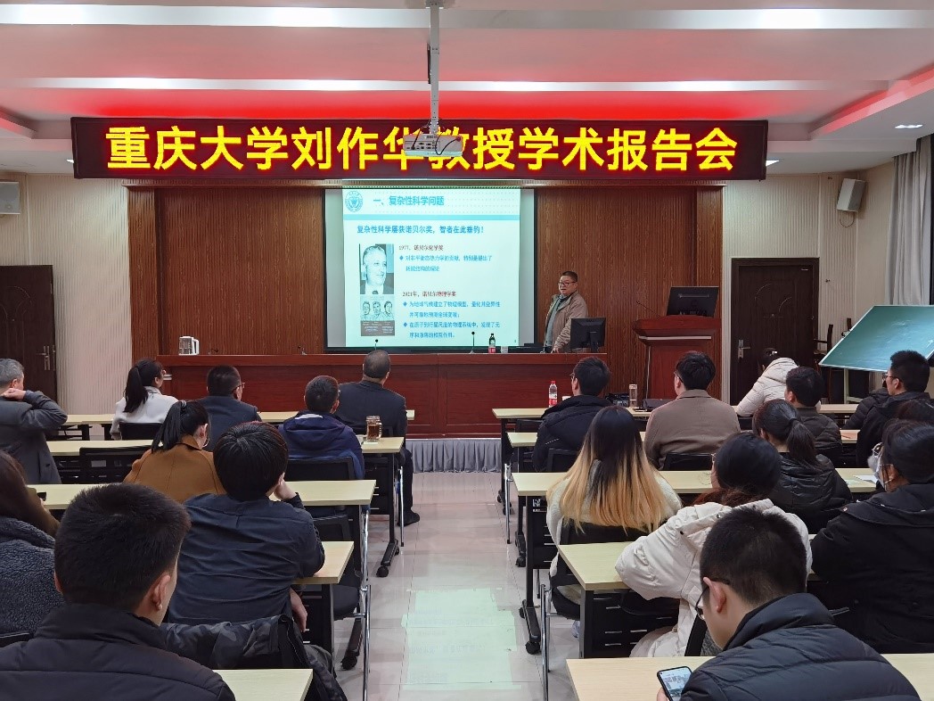 2021年12月10日下午,重庆大学化学化工学院副院长、国家高层次人才学术带头人、博士生导师刘作华教授,应邀来122cc太阳集成游戏废油资源化技术与装备教育部工程研究中心做了一场关于“固废处理与资源化利用中的复杂性科学问题” 的学术报告,中心100余名师生参加。