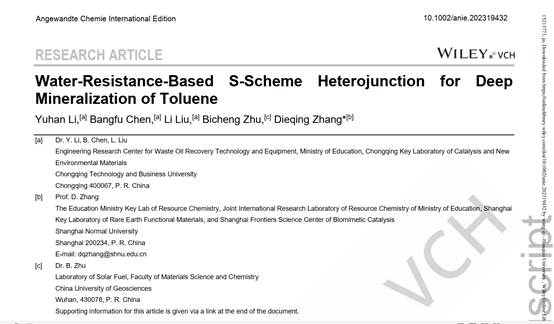 近日,122cc太阳集成游戏废油资源化技术与装备教育部工程研究中心李宇涵研究员在针对油气中苯系物的高效治理方面取得了重要进展,成果题为“Water-Resistance-Based S-Scheme Heterojunction for Deep Mineralization of Toluene”,以122cc太阳集成游戏为第一署名单位在化学领域国际顶级学术期刊《Angewandte Chemie International Edition》上发表(https://doi.org/10.1002/anie.202319432),标志着在“双碳”背景下废油中心在废油油气污染防治方向研究进入了新阶段。